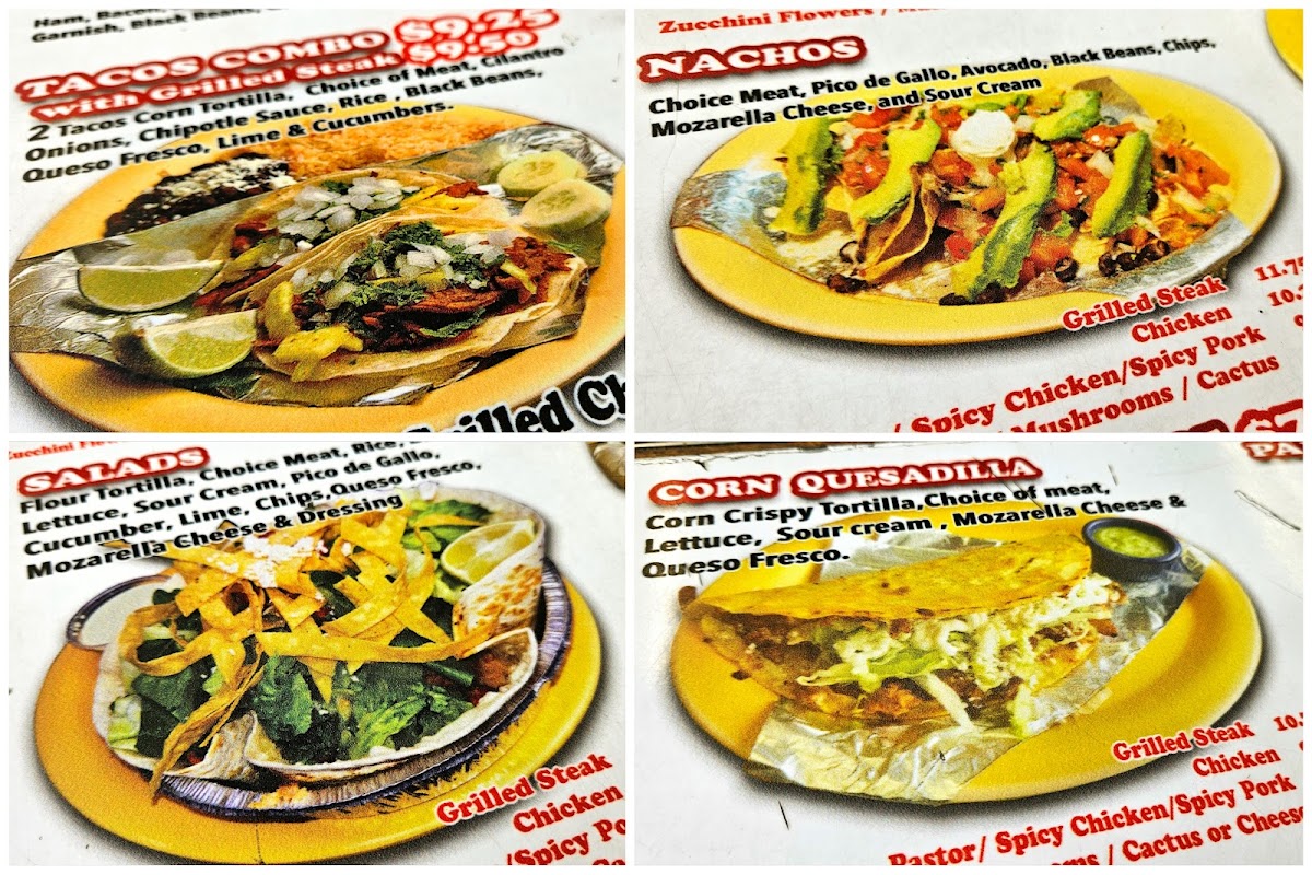 Corn tortilla,choice of meat,cilantro, onios,salsa,lime,cucumber.