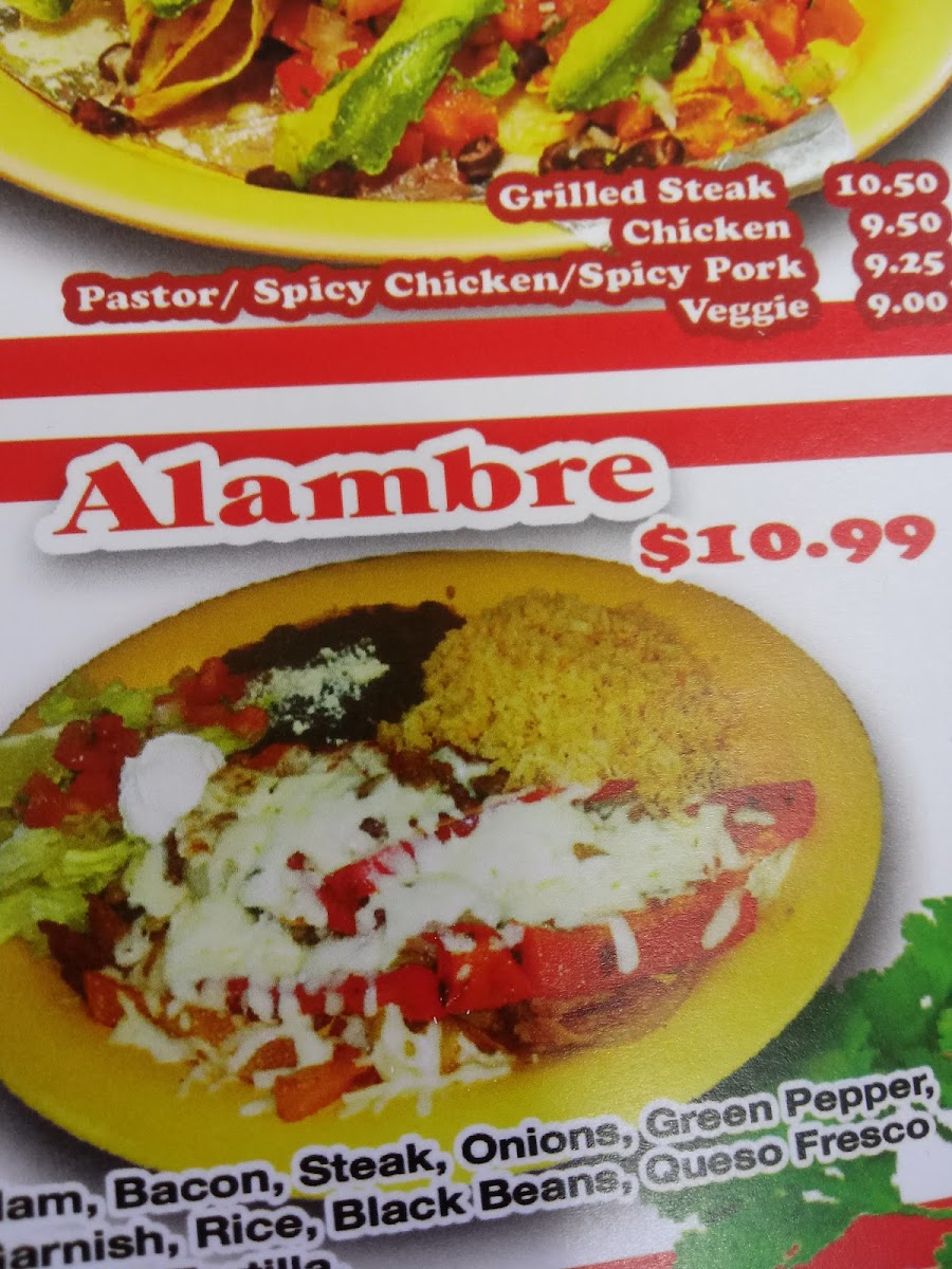 Corn fried, tortilla, choice of meat, black beans, lettuce, sour cream and queso fresco.gluten-free.